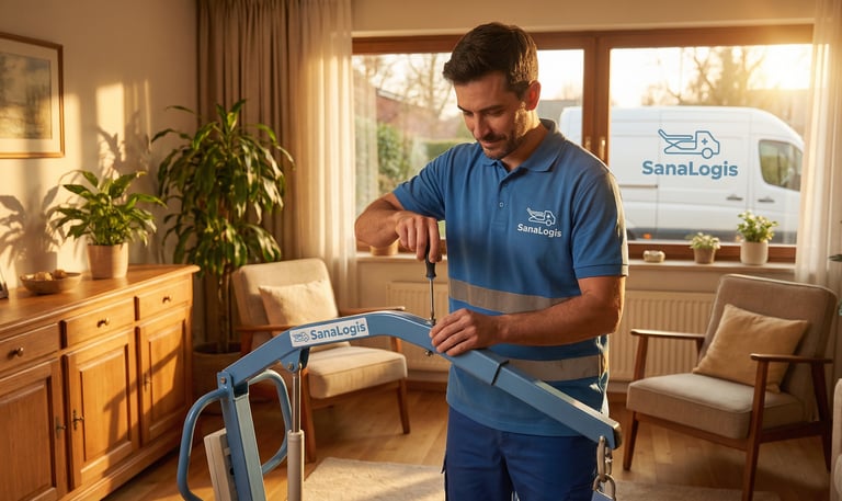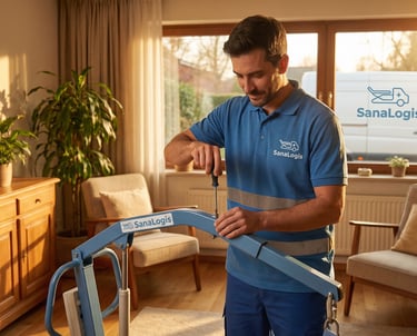 SANALOGIS es una empresa logística especializada en transporte, instalación y puesta en marcha de productos sanitarios: camas articuladas con motor, scooters, grúas, sillones y mobiliario técnico...
